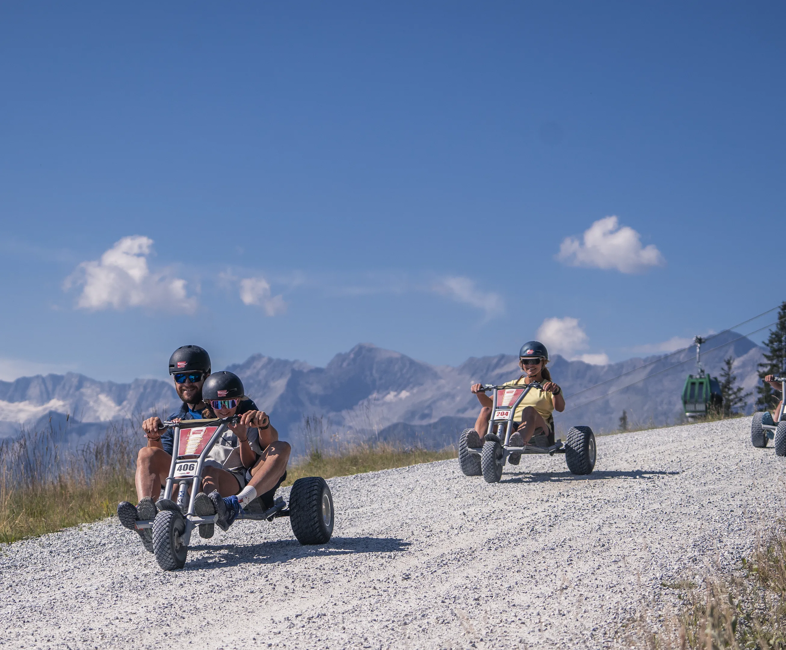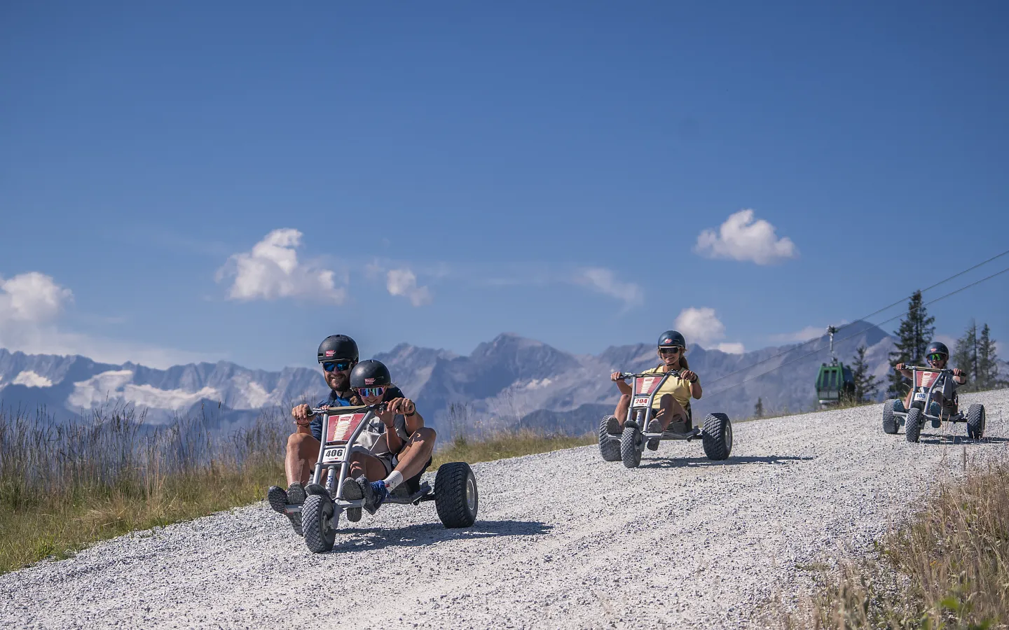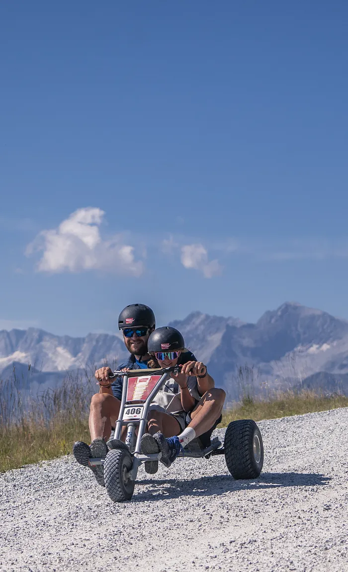 Na horské dráze Mountaincart na Wildkogelu zažijete jedinečnou kombinaci přírody, panoramatických výhledů a rychlosti. Trasa vás zavede 4,5 kilometru dolů do údolí – kolem horských pastvin, s nádhernými výhledy a spoustou zábavy.