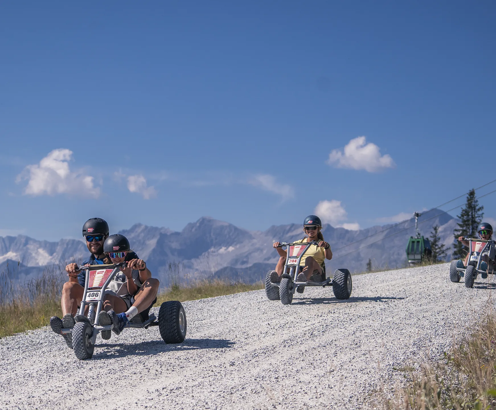 Od 10 let a při minimální výšce 150 cm mohou děti řídit mountaincart samy – samozřejmě v doprovodu dospělé osoby, která na ně dohlíží.