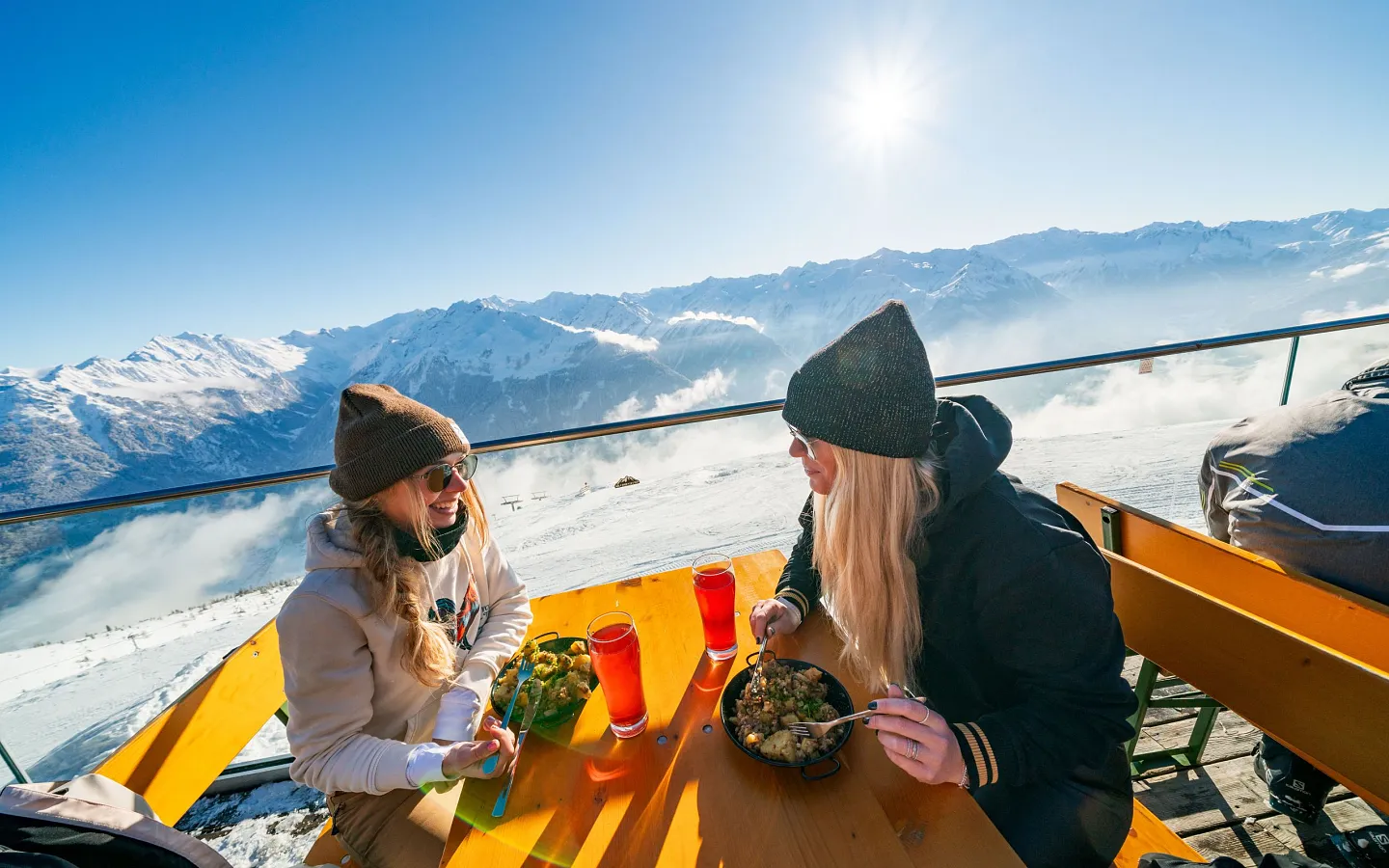 Objevte útulné horské chaty a almské hospůdky v oblasti Wildkogel-Arena – jsou to dokonalá místa pro odpočinek během lyžařského nebo sáňkařského dne a ideální zastávka po zimní túře. Uvelebte se na slunných terasách a vychutnejte si výhled na nejvyšší vrcholy národního parku Hohe Tauern.