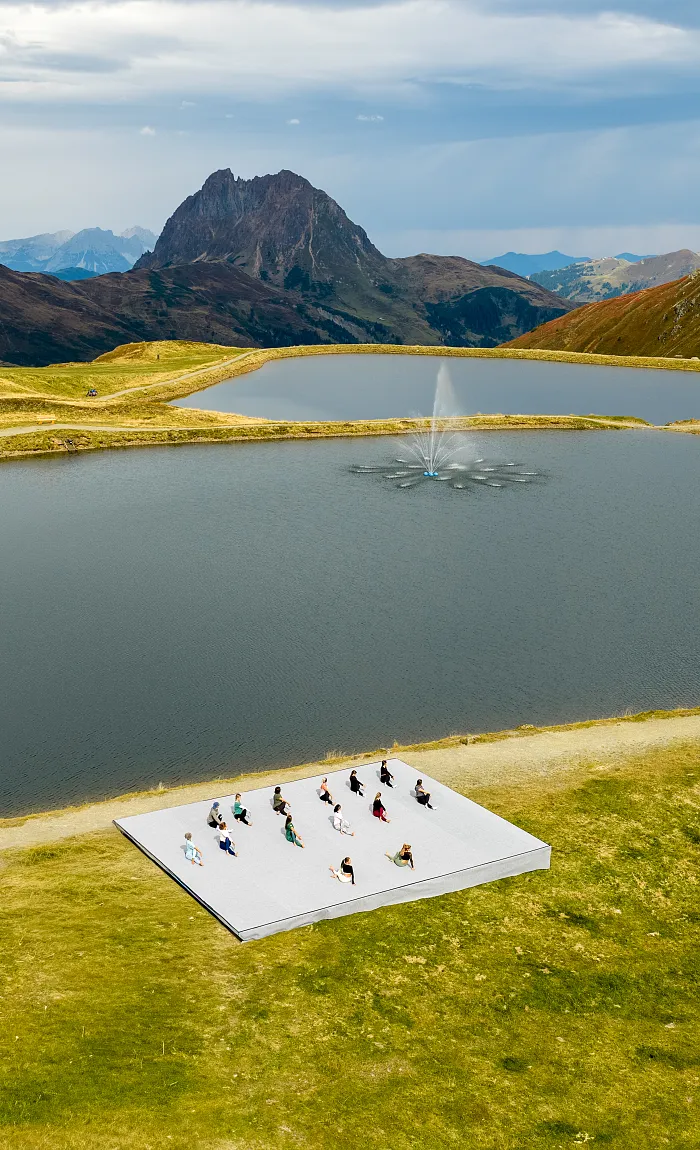 Professionelle Trainer begleiten Sie durch abwechslungsreiche Einheiten wie Yoga, Pilates, Bodega moves®, Boundless Movement oder Dance Fitness – am Berg, im Tal oder an idyllischen Seen.