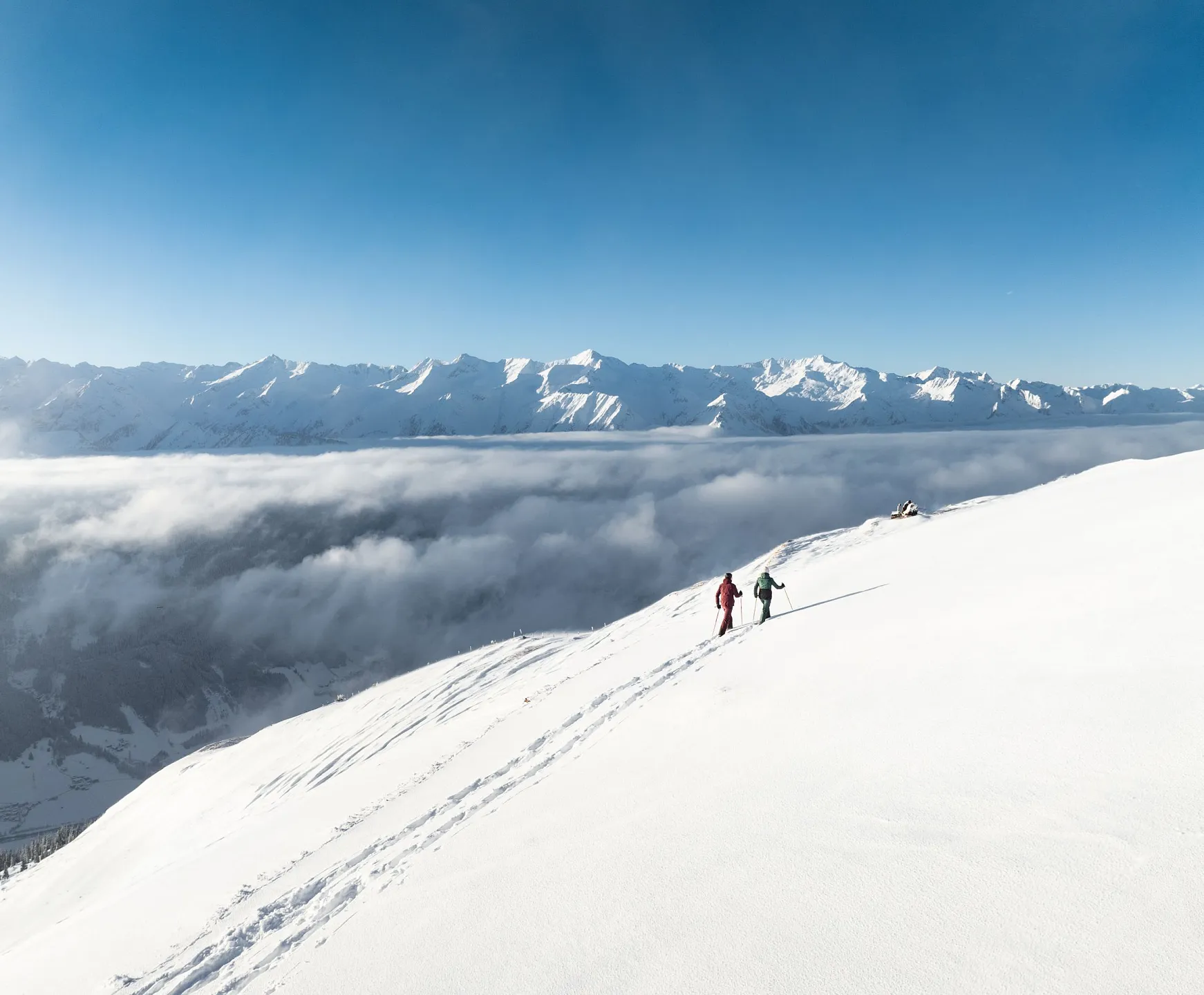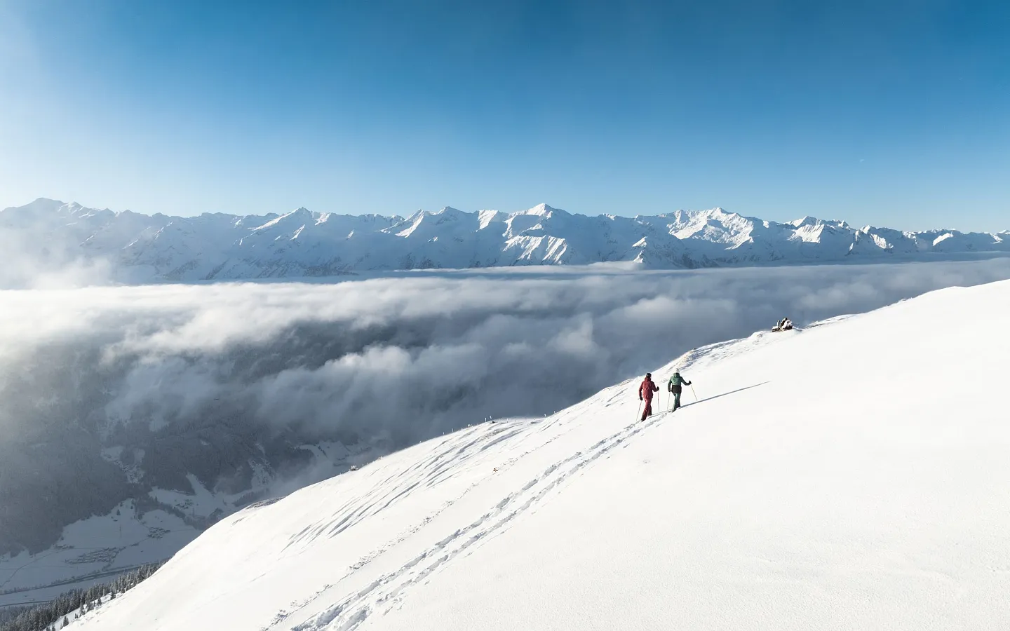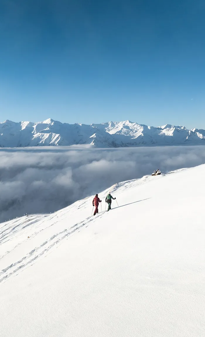 During your winter holiday, take your foot off the gas and unwind, let your gaze wander aimlessly and your thoughts drift away. Simply put one foot in front of the other, kick up the snow and leave your trail through the endless white of a snow-covered field. Only by slowing down and sinking into a gentle, leisurely pace can you truly take in the natural world around you. Nowhere do snow crystals glisten more brightly than on a winter hike through fresh powder. Winter hiking is therefore perfect for nature lovers, fit pleasure-seekers and anyone who wants to take a day’s break from skiing.