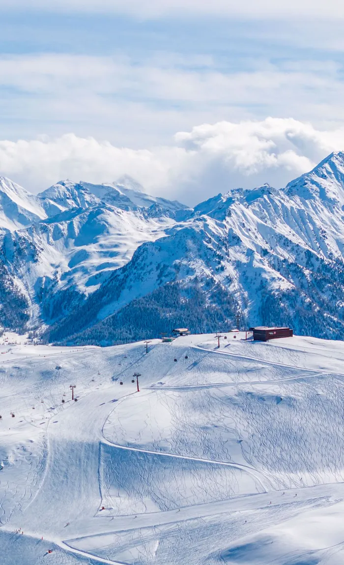 De gondelbanen brengen u in enkele minuten naar het hooggelegen gebied, waar u brede, perfect geprepareerde pistes en indrukwekkende panoramische uitzichten te wachten staan.